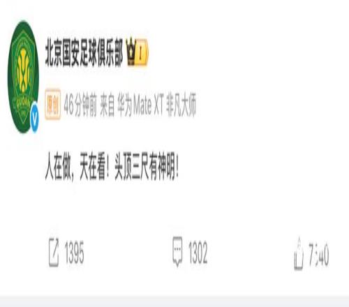 而上賽季足協杯冠軍北京國安的“人在做天在看”,直接空降熱搜第一。但大概一小時后,國安社交媒體刪掉了這條回應。