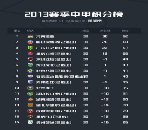 2013年參加中甲的所有球隊里,現存球隊僅剩河南建業(河南)和北京理工,其中河南今年被扣6分并罰款60萬元,北京理工未受到處罰。