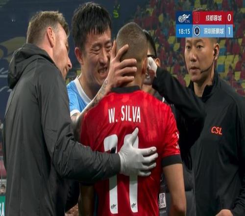 下半場回來,人數(shù)占優(yōu)的成都蓉城,依舊圍著對手的禁區(qū)猛攻,韋林頓的空門直接擊中橫梁彈出。第63分鐘,深圳新鵬城中場丟球,對手迅速發(fā)動反擊,韋林頓席爾瓦策動后,隨即快速插入禁區(qū),頭球破門,4:1!成都蓉城進(jìn)一步擴(kuò)大比分。