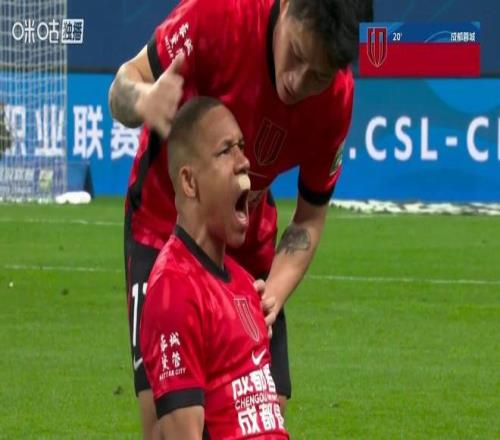 緊接著成都蓉城趁機扳平比分,第20分鐘費利佩助攻韋林頓攻入加盟首球,比分改寫為1-1。