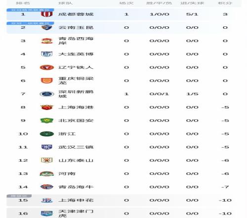隨著蓉城51大勝新鵬城,中超最新積分榜出爐!申花落后榜首13分