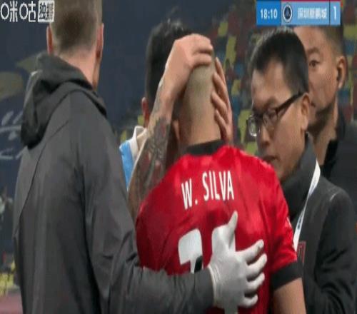 在昨夜的中超揭幕戰(zhàn)中,代表蓉城首發(fā)出戰(zhàn)的韋林頓-席爾瓦在第15分鐘,一次邊線附近拼搶中,面部遭到37歲的前國(guó)腳、新鵬城隊(duì)長(zhǎng)姜至鵬的肘擊,當(dāng)場(chǎng)血流不止,痛苦捂著臉躺在地上。