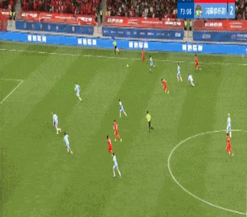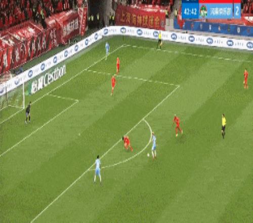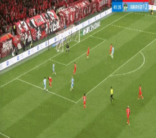 半場補時第3分鐘,李帥腳后跟傳球,楊希下底橫傳,加布里埃爾門前包抄破門,海港扳回一城1-2河南。