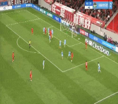 第16分鐘,邁達納角球機會頭球破門,河南隊將比分擴大至2-0。