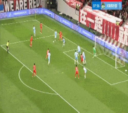 易邊再戰,第53分鐘,河南隊再次制造威脅,古斯塔沃禁區推射,顏駿凌撲救立功。